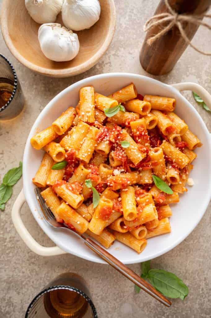 Cooking the tomatoes softens them slightly, concentrates their flavor, and helps create a cohesive sauce that coats the pasta instead of sitting separately. It's the same approach I use in my tomato garlic penne and it makes all the difference.