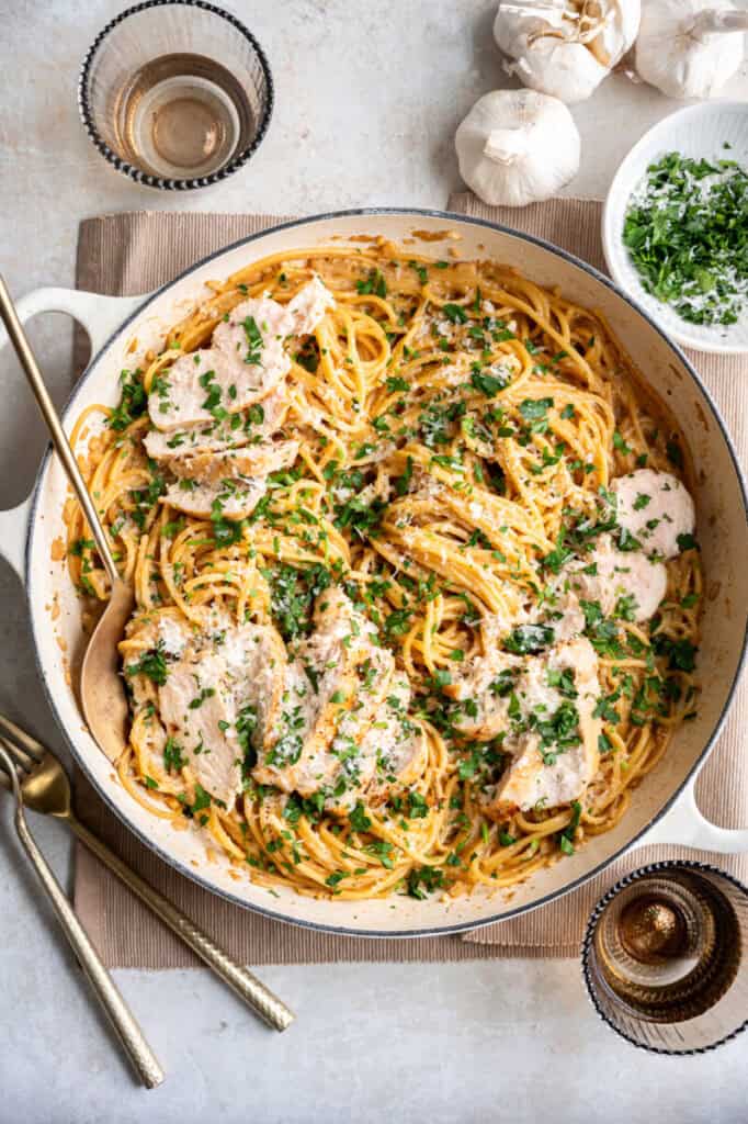- Flavorful - This recipe is loaded with flavor, thanks to the garlic, parmesan, and a splash of white wine that make the creamy sauce super rich and tasty. Plus, the perfectly seasoned chicken takes it to the next level!