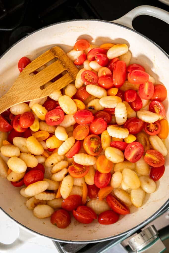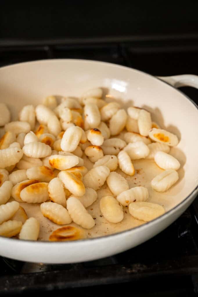 You will know when the gnocchi are done when they have a crispy golden brown outer edge on each side.