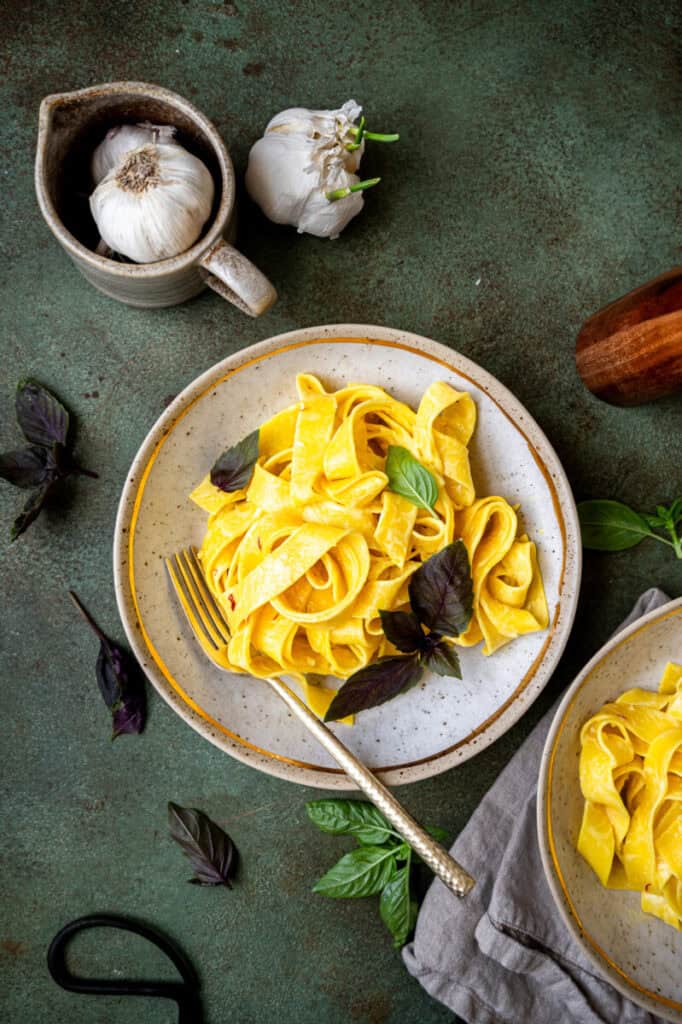 This saffron pasta is bursting with flavor and works beautifully as a main course or paired with chicken or shrimp. The rich creamy sauce with saffron is complemented by garlic, a hint of red pepper flakes, and a touch of fresh basil. It's a dish that's both comforting and elegant, and one you're going to absolutely love!
