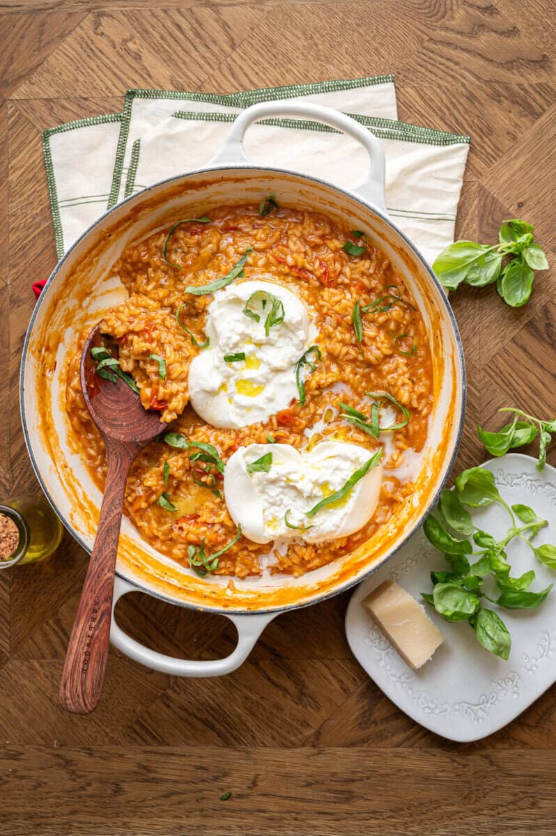 Simple Burrata Risotto Recipe (With Cherry Tomatoes)